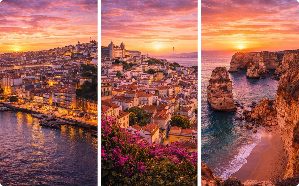 Portugal welcomes you with its golden beaches, picturesque towns, historic streets, and vibrant cities. Experience warm hospitality, rich cultural heritage, and stunning coastal views that make it an unforgettable destination.